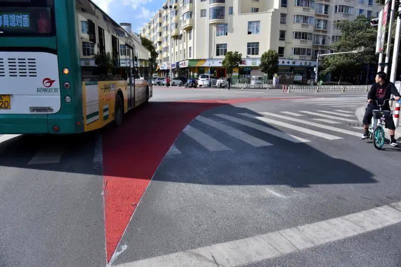近期,云南昆明交警陸續(xù)在昆明主城區(qū)具備條件的路口施劃警示區(qū)域,目前在西昌路與金碧路交叉口、紅錦路與霖雨路交叉口2個試點(diǎn)路口已施劃了紅顏色的大型車輛“右轉(zhuǎn)彎盲區(qū)警示帶”。