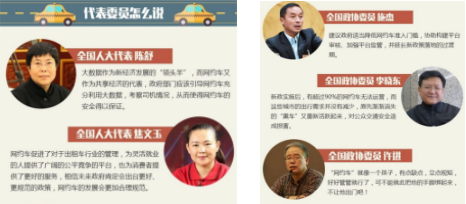 會議上,委員、代表們?yōu)槔习傩瞻l(fā)聲,提議網(wǎng)約車行業(yè)應該更加有序、健康的發(fā)展,加強監(jiān)管。其中全國人大代表蔡繼明建議按照國務院公平競爭審查制度的要求,提高政策透明度,加強政企合作,提升監(jiān)管能力;上海代表團代表樊蕓則建議相關(guān)文件需要得到堅決貫徹執(zhí)行,使出租汽車行業(yè)回歸法制軌道,讓出租汽車行業(yè)從業(yè)人員的合法權(quán)益得以保障,進一步維護廣大消費者的權(quán)益,促進網(wǎng)約車市場健康發(fā)展出行市場的健康發(fā)展。