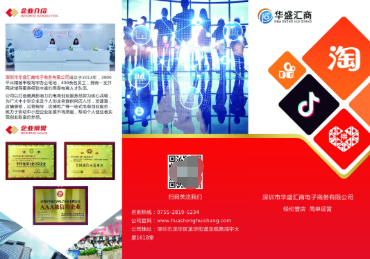 深圳市華盛匯商電子商務(wù)有限公司成立于2013年,是一家電商技術(shù)服務(wù)業(yè),通過提供優(yōu)質(zhì)貨源、網(wǎng)店技術(shù)培訓(xùn)、視覺搭建等服務(wù)支持,幫助電商從業(yè)者及有創(chuàng)業(yè)需求的人群,更好地在淘寶電商平臺進(jìn)行創(chuàng)業(yè)。公司主營淘寶、拼多多等網(wǎng)店運(yùn)營技術(shù)培訓(xùn),對于想通過網(wǎng)絡(luò)開店的創(chuàng)業(yè)者、想從其他行業(yè)轉(zhuǎn)到淘寶就業(yè)的學(xué)者、零基礎(chǔ)學(xué)習(xí)淘寶客服的學(xué)員等人群都是最優(yōu)選擇。