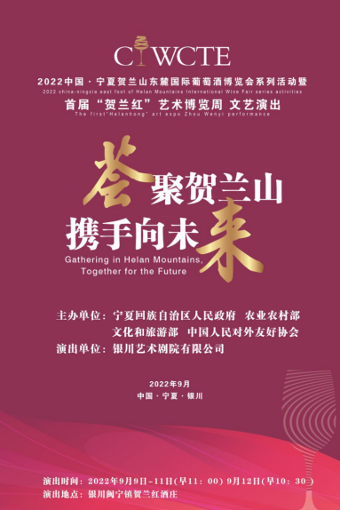 本次活動由寧夏回族自治區(qū)文化和旅游廳指導(dǎo),銀川市文化旅游廣電局、西夏區(qū)人民政府主辦,銀川市葡萄酒產(chǎn)業(yè)發(fā)展服務(wù)中心、銀川市西夏區(qū)文化旅游體育廣電局、寧夏國際葡萄酒交易博覽中心(有限公司)、銀川市賀蘭山東麓葡萄酒產(chǎn)業(yè)聯(lián)盟協(xié)辦,銀川藝術(shù)劇院有限公司執(zhí)行。
