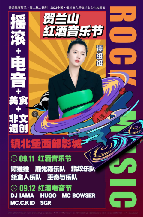 賀蘭山紅酒音樂節(jié)將于9月11日在鎮(zhèn)北堡西部影城激情開唱,譚維維、鹿先森樂隊(duì)、指紋樂隊(duì)、紙盒人樂隊(duì)、王奇與樂隊(duì)等國內(nèi)著名藝人及樂隊(duì)齊聚影城,帶給觀眾極具視聽享受的賀蘭山搖滾之夜;9月12日的紅酒電音節(jié)將邀請區(qū)內(nèi)外知名DJ/MC,共同打造賀蘭山下的電音盛宴。