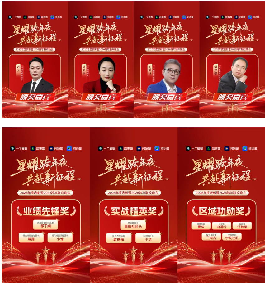 歲序更迭,星芒織夢。2026年2月10日晚20:00至24:00,由一個(gè)圈圈市場發(fā)展委員會(huì)-商學(xué)院策劃并主辦的“星耀跨年夜·共赴新征程——2025年度表彰暨2026跨年聯(lián)歡晚會(huì)”盛大舉行。本次年會(huì)采用“圈啟益事快手號(hào)直播(主會(huì)場)+騰訊會(huì)議室轉(zhuǎn)播(分會(huì)場)”的云端形式,在滿堂歡悅中圓滿落下帷幕。