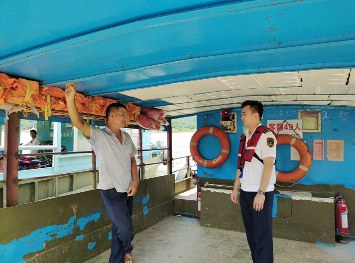 海事執(zhí)法人員現(xiàn)場提醒渡工嚴(yán)禁超載渡運(yùn)