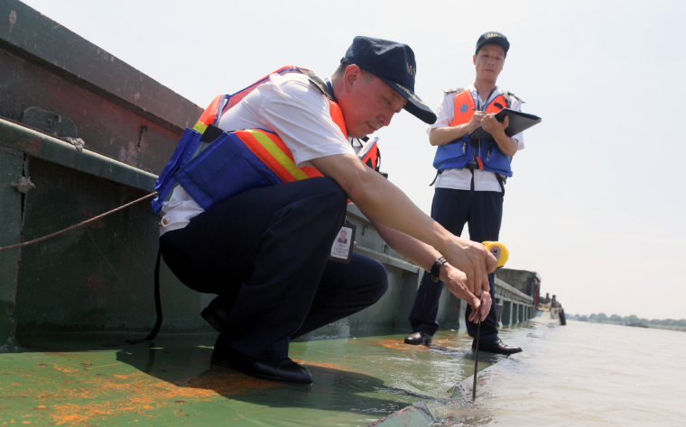 看到交通執(zhí)法人員上船,浙安吉貨0827的船老大連忙解釋,“我知道超了,但前面馬上就到了。”現(xiàn)場測量顯示,貨船左船舷吃水面的距離為負(fù)2厘米,右船舷吃水面的距離為負(fù)4厘米。證據(jù)擺在眼前,交通執(zhí)法人員現(xiàn)場就開具了執(zhí)法文書,要求船方在規(guī)定時間內(nèi)到大隊接受調(diào)查處理。