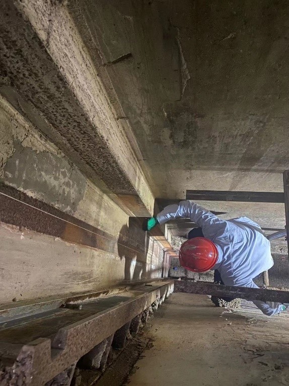 該中心檢測人員認(rèn)真按照《劉老澗一號船閘2021年大修工程檢測方案》,運(yùn)用全站儀、3D掃描儀、里氏硬度計(jì)、金屬超聲波探傷儀、磁阻測厚儀等檢測設(shè)備對閘室墻、閘閥門機(jī)械設(shè)備設(shè)施認(rèn)真進(jìn)行檢查、檢測。截至5月28日共完成沉降、位移觀測各5次,觀測結(jié)果顯示在閘室抽水及抽水結(jié)束時閘室墻未發(fā)生明顯位移和沉降,閘室處于墻穩(wěn)定狀態(tài)。上游閥門主滾輪系外圓磨損量在規(guī)范范圍內(nèi),軸套內(nèi)孔和和軸磨損量超標(biāo)嚴(yán)重,滾輪軸有明顯偏磨現(xiàn)象;閥門主滾輪硬度有所下降,軸硬度基本無降低現(xiàn)象;閥門門體狀況較好,無明顯變形、損壞現(xiàn)象,背拉架無明顯磨損,門體表面附著雜物較多,部分區(qū)域涂層有起鼓現(xiàn)象。