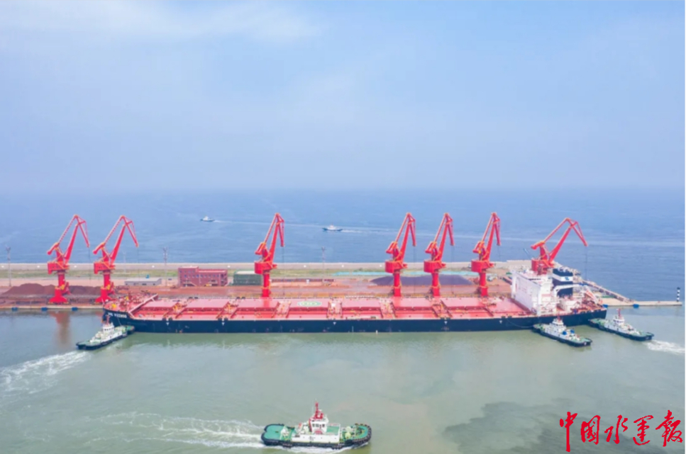 8月2日上午,臺風(fēng)“煙花”肆虐過后的海面已恢復(fù)平靜,滿載31.9萬噸巴西卡粉的“礦石福州”輪緩緩駛過日照轄區(qū)南深水航道,于13時成功靠泊日照港。該輪實際吃水達到21.4m,刷新了日照港建港以來靠泊船舶最大吃水記錄,以嶄新業(yè)績?yōu)樯綎|港口成立2周年獻禮。