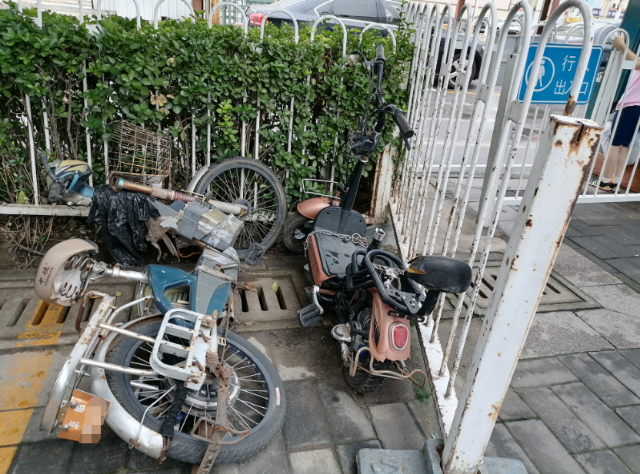 像王敏這樣,直接把不要的舊車遺棄在“犄角旮旯”地方的車主還有很多。在車道溝南里社區(qū)看到,好幾棟樓的樓門兩側(cè),都堆放著廢棄電動(dòng)自行車、電動(dòng)三輪車,也有自行車。好幾輛摞在一起,有的車輪不見了,有的沒了車座。“以前真沒留神。這應(yīng)該好幾年了吧,沒人管可不就越堆越多。”在小區(qū)遛彎的居民也記不起來這里是什么時(shí)候變成了舊車?yán),她還記得早幾年,社區(qū)曾經(jīng)組織過舊車換禮物的活動(dòng),當(dāng)時(shí)曾經(jīng)清理過一批自行車,“電動(dòng)車大多數(shù)都是年輕人騎,賣不了幾個(gè)錢,估計(jì)年輕人就懶得費(fèi)那個(gè)工夫了。”