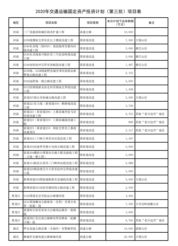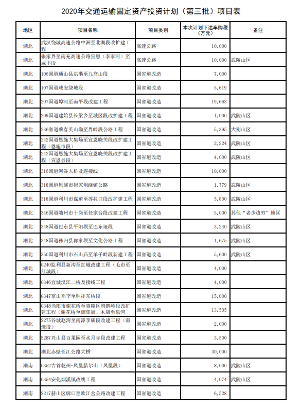 2020年6月29日,《交通運輸部關(guān)于下達(dá)2020年交通運輸固定資產(chǎn)投資計劃(第三批)的通知》(交規(guī)劃函〔2020〕439號)下達(dá)了2020年第三批交通運輸固定資產(chǎn)投資計劃,現(xiàn)將有關(guān)項目和資金安排情況進(jìn)行公開。