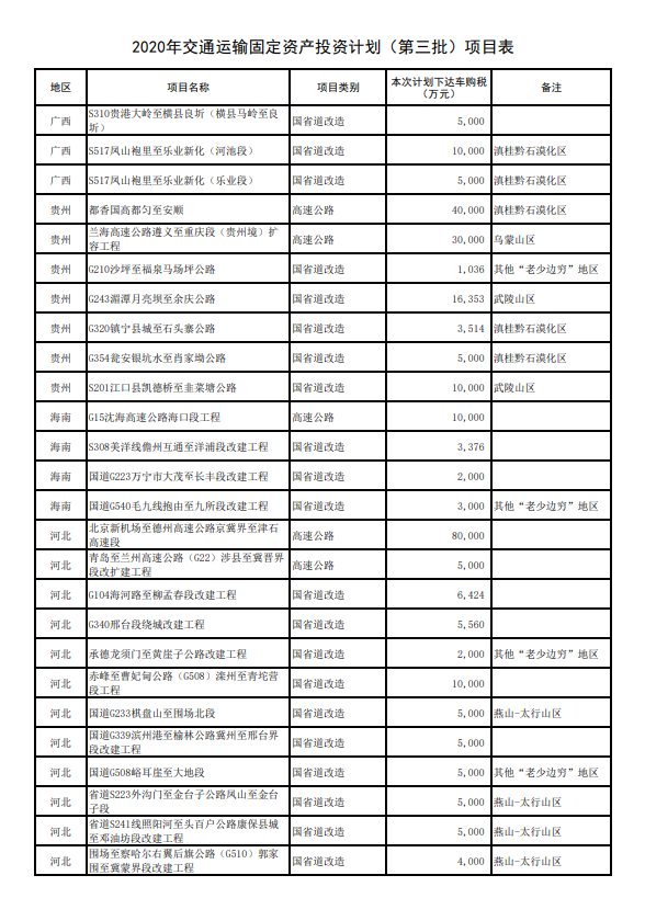 附件1.2020年交通運輸固定資產(chǎn)投資計劃(第三批)項目表