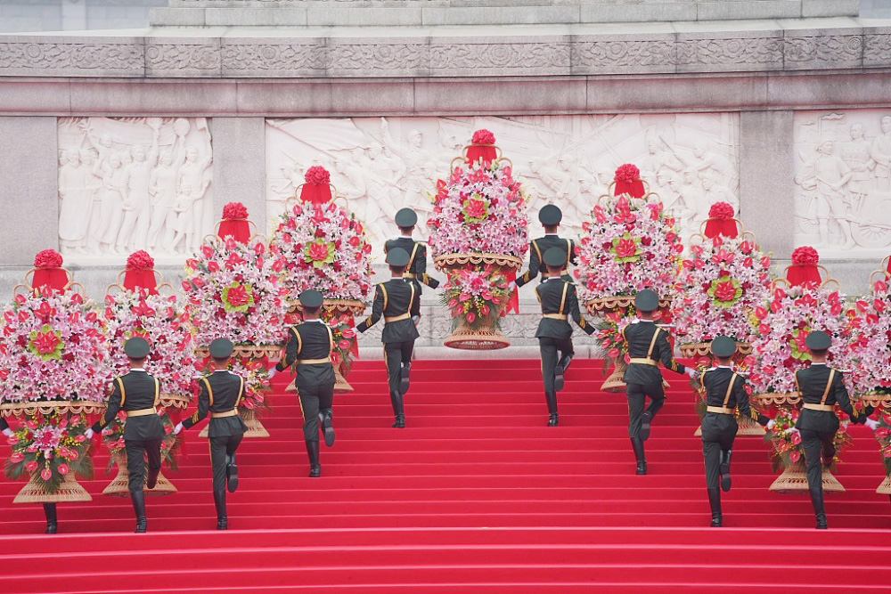 2021年9月30日,北京,烈士紀念日,向人民英雄敬獻花籃儀式在天安門廣場舉行。
