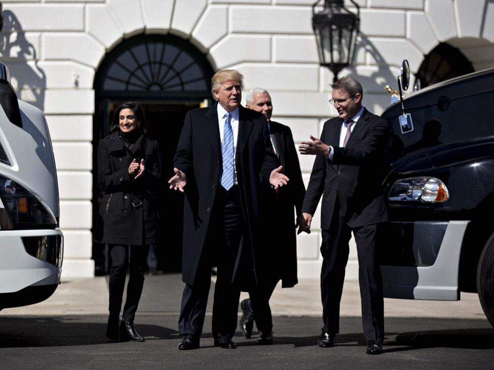 特朗普會(huì)見美國(guó)卡車協(xié)會(huì)的司機(jī)和工作人員。
