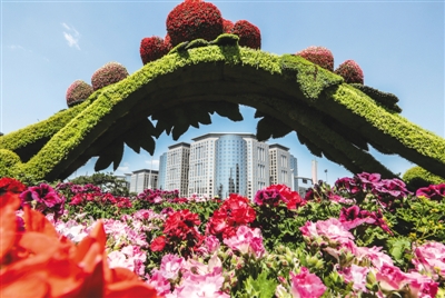 “一帶一路”國際合作高峰論壇召開在即,北京累計新增綠化面積53.5萬平方米。圖為東單路口的“花開富貴”花壇。新華社記者 殷 剛攝
