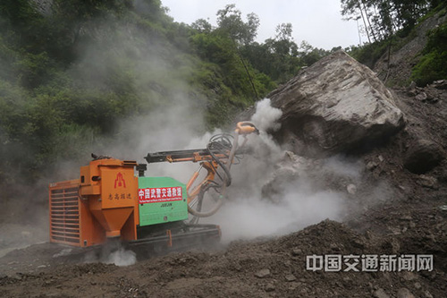 2015年,中國武警交通救援突擊隊(duì)官兵正對尼泊爾公路一處塌方巨石進(jìn)行爆破作業(yè)。涂敦法攝影