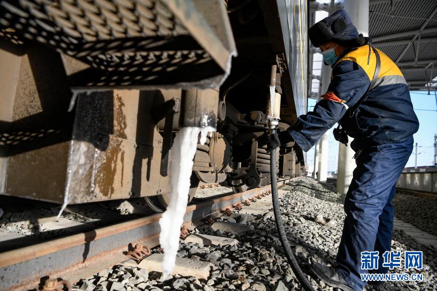 1月6日,寧夏銀川市最低氣溫達(dá)到零下21攝氏度,鐵路戶外工作者堅守崗位,保障列車運行。