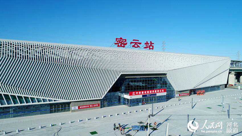 密云站總建筑面積6萬(wàn)平方米,外觀參照“密云水庫(kù)倒梯形堤壩”,近1000個(gè)長(zhǎng)40厘米、寬20厘米的裝飾件鑲嵌在站房外立面,打造“波光粼粼”的視覺(jué)美感。