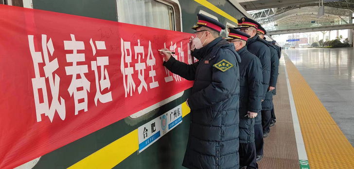 2023年春運(yùn)帷幕即將拉開,為確保春運(yùn)期間旅客和諧、有序、安全出行,中國鐵路上海局集團(tuán)有限公司合肥客運(yùn)段阜甬車隊(duì)在認(rèn)真貫徹國鐵集團(tuán)春運(yùn)工作的相關(guān)精神要求的同時,主動作為、提前謀劃、全面部署,科學(xué)精準(zhǔn)的做好春運(yùn)旅客安全運(yùn)輸保障工作,圖為該車隊(duì)干部職工在T221次列車上組織開展了“戰(zhàn)春運(yùn) 保安全 立新功 做貢獻(xiàn)”春運(yùn)簽名活動,以此拉開春運(yùn)序幕。(張衛(wèi))