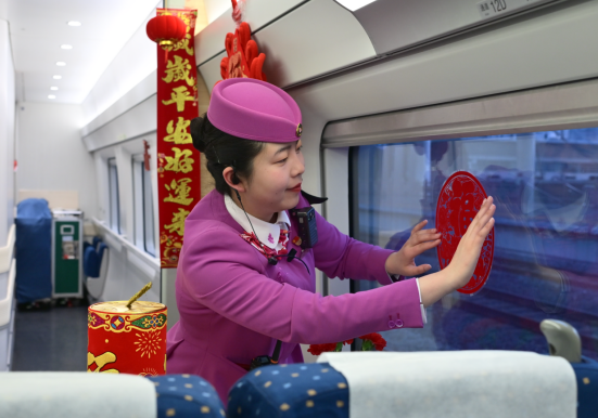 針對(duì)春運(yùn)期間的行李較多、乘降率較高,列車工作人員穿梭在各個(gè)車廂,遇到老年旅客,會(huì)主動(dòng)幫忙搬運(yùn)行李、調(diào)整擺放位置,遇到帶孩子的家庭,會(huì)蹲下身輕聲叮囑家長(zhǎng)照顧好身邊的小孩。一句句貼心的叮囑,一個(gè)個(gè)暖心的舉動(dòng),讓“文明乘車、平安春運(yùn)”的理念不再是冰冷的文字,而是融入點(diǎn)滴服務(wù)的人文關(guān)懷,讓車廂里處處充滿溫情與善意。(文/趙清 郝元菁)