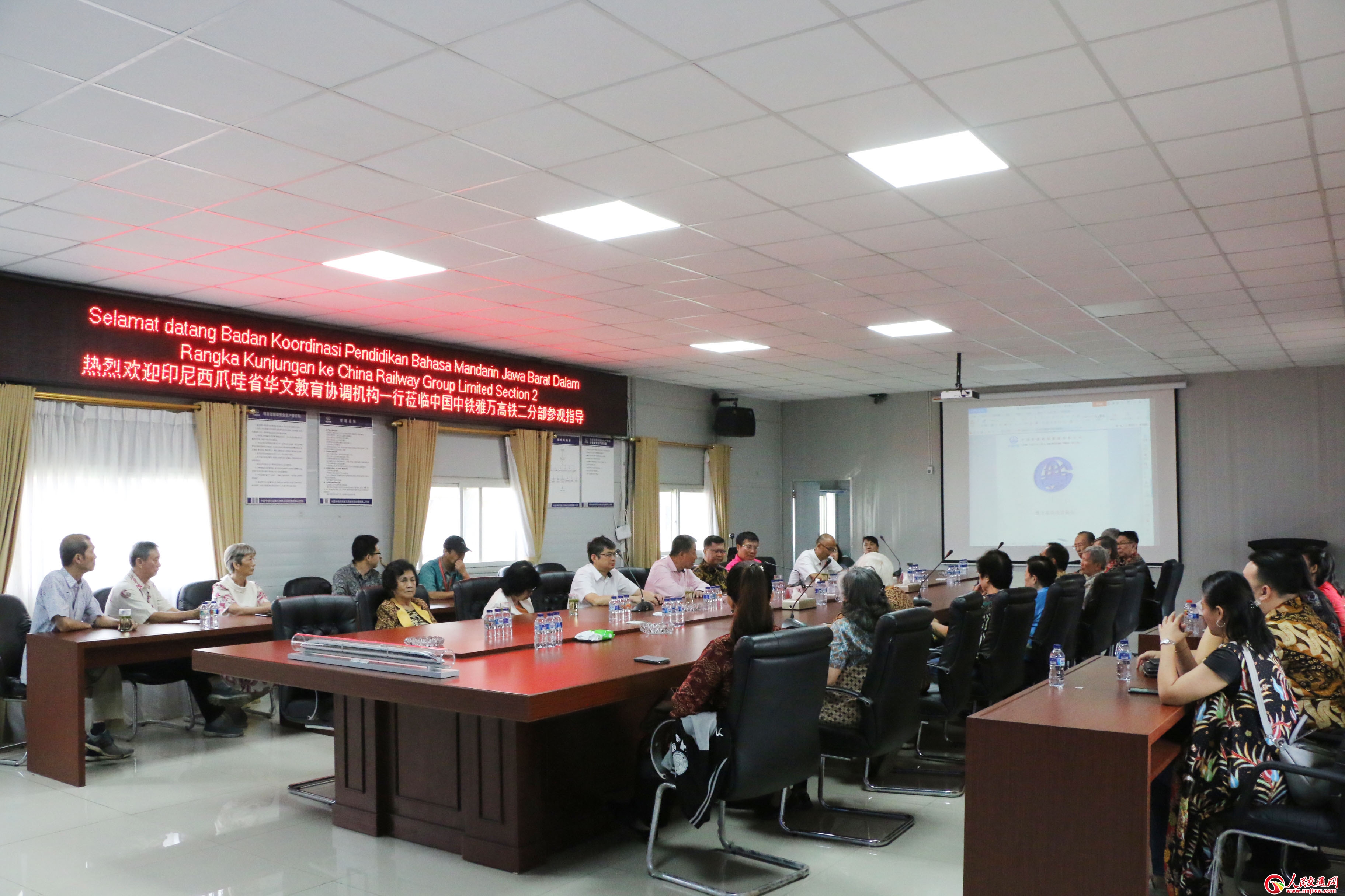 人民交通網(wǎng)訊(通訊員 李利)印度尼西亞當(dāng)?shù)貢r(shí)間11月14日,印尼西爪哇省華文教育協(xié)調(diào)機(jī)構(gòu)主席劉一江率團(tuán)共25人在中國(guó)中鐵印尼雅萬(wàn)高鐵項(xiàng)目經(jīng)理部總經(jīng)理張偉、副總經(jīng)理胡啟升的陪同下到中國(guó)中鐵印尼雅(加達(dá))萬(wàn)(隆)高鐵項(xiàng)目經(jīng)理部二分部(中鐵四局一公司)參觀(guān)交流。
