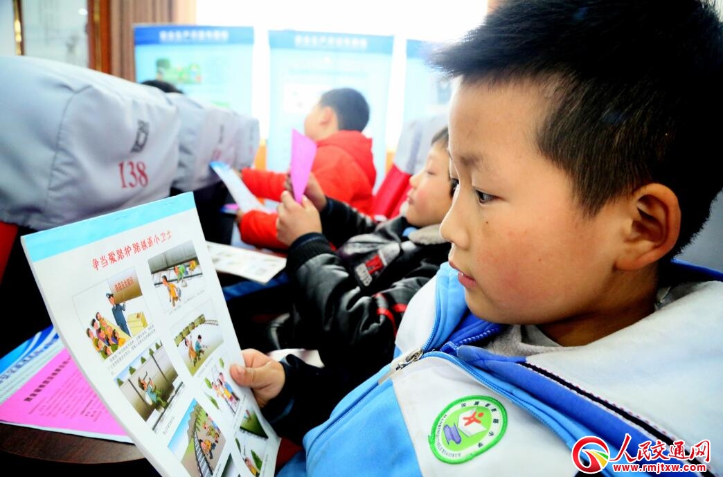 5.受訓(xùn)小學(xué)生拿到鐵路安全宣傳手冊后,認(rèn)真學(xué)習(xí)。