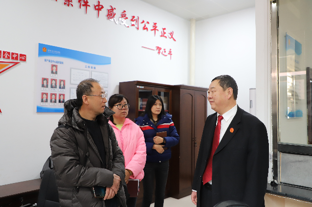 2月15日上午,延安市寶塔區(qū)法院訴前調(diào)解團(tuán)隊負(fù)責(zé)人馮延鴻一行3人到神木市法院參觀交流,該院黨組成員、副院長敖漫,訴訟服務(wù)中心主任王孝華陪同。