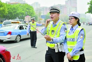 “網(wǎng)紅”交警在直播執(zhí)法過程。
