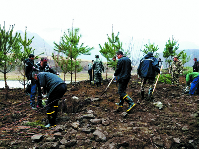 長(zhǎng)白縣交通運(yùn)輸局公路段共60余名志愿者參加了沈長(zhǎng)線、朝長(zhǎng)線及農(nóng)村公路公路兩側(cè)義務(wù)植樹活動(dòng)。其中朝長(zhǎng)線種植黃菠蘿400棵、樺樹1800棵;沈長(zhǎng)線種植松樹300棵、李子樹300棵、黃菠蘿400棵、綠籬8000棵、黑心菊2000平方米、白三葉4000平方米。(崔秀蘭 馬恩選)