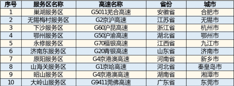 表3元旦假期較繁忙服務(wù)區(qū)