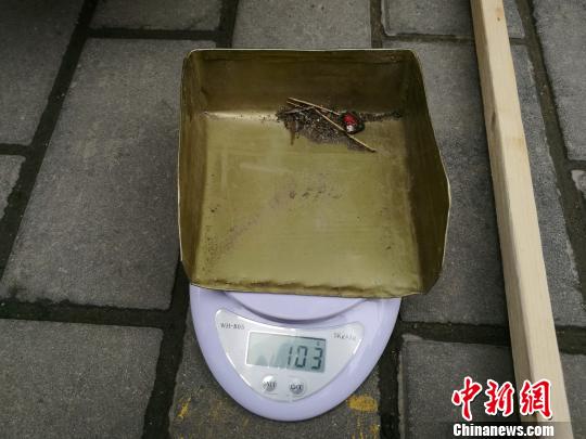 圖為檢查人員清理塵土進行稱重!垪n 攝