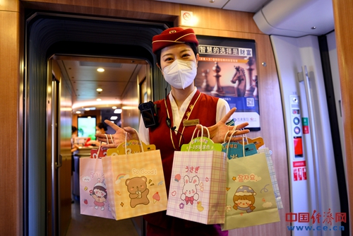 乘務(wù)員為孩子們準(zhǔn)備的節(jié)日小禮物。毛衛(wèi)華/攝