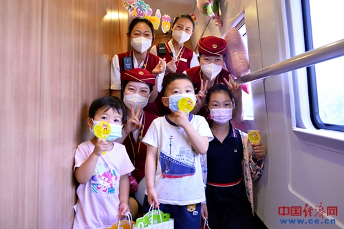 在“六一”國際兒童節(jié),為了能讓孩子們在列車上度過自己的快樂節(jié)日,讓他們在旅途中留下愉快,難忘,美好的回憶。北京客運段京滬高鐵車隊北京南開往千島湖的G31次列車工作人員精心布置了車廂,高鐵小姐姐們還為孩子們準(zhǔn)備了漂亮的卡通文具和小玩具禮物。