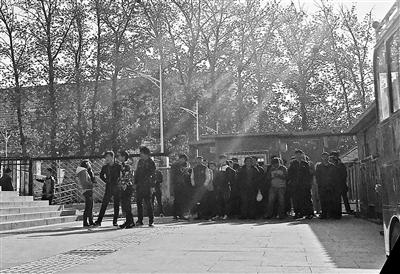 從地鐵4號線新宮站附近出發(fā),一個多小時的行程后,大巴車駛進燕山駕校。駕校位于一片平房之中,大門口處有三個攝像頭,四名工作人員站在大門外。駕校內(nèi)停放著幾臺卡車,供考試人員進行實際操作科目的考試使用。