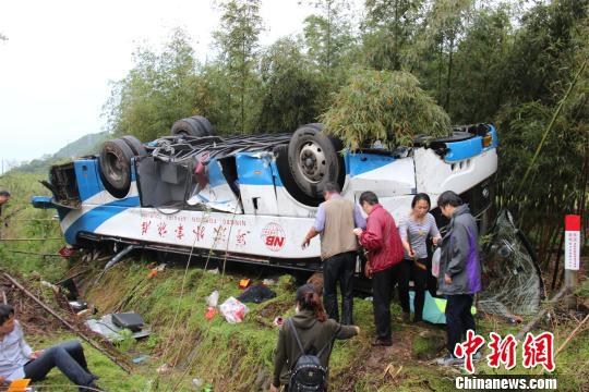 【原標(biāo)題】浙江甬金高速載26人大客車翻車 多人受傷